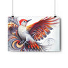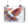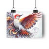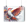 There once lived a male woodpecker, whose vibrant red head and intricate feathers had caught the eye of all who beheld him. His wings, however, were unlike any other. Each feather was a work of art, adorned with Fibonacci spiral fractals that seemed almost too intricate, too detailed, to possibly belong on the wings of a bird.