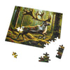 Immerse yourself in the wonder of the wilderness with our "Enchanted Forest Guardian" jigsaw puzzle. This exquisite puzzle, featuring 1000 pieces, invites you to piece together the magic of a mythical woodland realm, anchored by the serene yet spirited figure of Eirwyn, the reindeer. With each puzzle piece, you'll bring to life the intricate details of Eirwyn's majestic antlers, a vibrant ecosystem in themselves, crowned with lush moss, blooming flora, and playful forest birds.