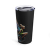 This 20oz tumbler would be graced with the luminous image of "Lumina - The Fractal Fairy," a blend of fantasy and fractal artistry. The image features a serene fairy sitting contemplatively, her delicate form etched against a stark black background that accentuates the vibrant spectrum of colors in her expansive wings. These wings, crafted from a myriad of intricate fractal patterns, unfurl in a symphony of fiery oranges, deep reds, and cool blues, swirling with shapes that draw the eye into an endless maze of beauty.