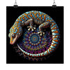 Crafted with meticulous attention to detail, the poster features a labyrinthine array of colors and shapes, each meticulously placed to represent the intricate balance and order of the natural world. The serpent's body, a stunning spectrum of blues, oranges, and purples, curls into a perfect circle, symbolizing the infinite cycle of life and the eternal quest for knowledge.
