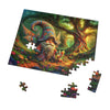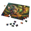 Discover the joy of assembling "The Gnome's Enchanted Rendezvous" with this exquisite jigsaw puzzle. As you embark on this captivating puzzle journey, you'll immerse yourself in the enchanting world of Thistlewick, the ageless gnome, and his loyal dragon companion, Emberglow.