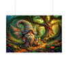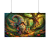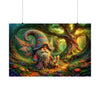 This poster captures an enchanted moment as the morning mist clings to the vibrant underbrush, and the rich tapestry of Thistlewick's robe blends with the lush, dreamy landscape of his realm. The forest, alive and teeming with psychedelic colors, frames this whimsical duo in a celebration of nature's magic.