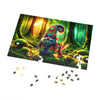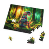 Immerse yourself in the magic of the Enchanted Forest with this intricately designed jigsaw puzzle, featuring the vibrant and serene world of Eirik, the whimsical gnome with his fractal-patterned attire and his mystical dragon companion, Aithne.
