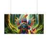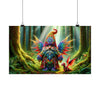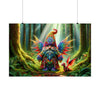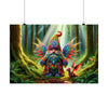 Step into the enchantment with "The Guardian of Whimsy Wood" – a dazzling poster that captures the essence of magic and wonder. This vibrant visual feast invites you to explore the mystical realm where Eldric the Vibrant, a jubilant gnome with a spiraling mandala hat and a coat of a thousand colors, stands at the heart of a sunlit, verdant forest.
