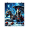 Embrace the enchantment of the season with our spellbinding poster, "The Guardian of Winter's Lore"! This mesmerizing artwork transports you to a mythical winter wonderland where the legendary Santa, reimagined as a valiant knight in ornate armor, stands beside his awe-inspiring dragon companion. Against the backdrop of a celestial night sky adorned with the Milky Way and a luminous moon, this dynamic duo embodies the spirit of Christmas with a fantastical twist.
