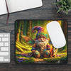Step into a magical realm with every click and scroll with the Guardian's Glee Mouse Pad. This mesmerizing gaming accessory features an exquisite image of a bearded gnome guardian, cloaked in a robe rich with swirling colors and intricate patterns, his hat a spiral of wonder. He is paired with a mystical, vibrant-hued dragonling companion, both basking in the soft, golden light filtering through an enchanted woodland.