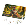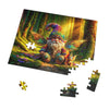 Delve into the realm of fantasy with the "Enchanted Companions" jigsaw puzzle, featuring the enchanting guardian gnome Thistlewick and his loyal dragon, Emberwing. Each piece of this puzzle is a step deeper into their magical world, a lush forest where every leaf and twig is imbued with wonder.