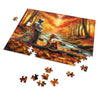 This 1000-piece puzzle challenges and delights, inviting you into a storybook setting that demands to be pieced together with care and admiration. It’s an adventure for the mind and a feast for the eyes, perfect for puzzle enthusiasts and fantasy lovers alike. Upon completion, the puzzle becomes a stunning portrait of camaraderie and the magical wonders of a world untouched by time, a testament to the enduring bond between man and myth. Suitable for framing and treasured display, this jigsaw puzzle will be a gateway to an eternal autumn, a keepsake that captures the essence of fantasy and the splendor of nature's own artistry.