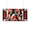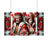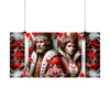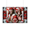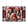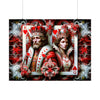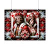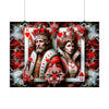 Behold the splendor of love eternal with our "The King and Queen of Hearts' Embrace" poster. This arresting piece of art transforms any space into a court of romance and regality. The King, draped in the finest threads of power and compassion, stands as a bastion of strength beside his Queen, whose beauty and intellect paint her as the realm's beating heart. Surrounded by a tapestry of crimson roses that whisper tales of their undying love, this portrait is a masterpiece that captures their legendary bond.