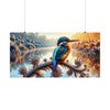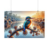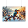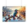 Immerse yourself in the mystical allure of 'Echoes of Infinity: The Kingfisher's Perch,' a poster that transcends the ordinary. Be spellbound by the kingfisher Orion, a vibrant sentinel against a backdrop of fractal beauty that stretches into the realms of the infinite. Each feather is a brushstroke of the universe, a vibrant fusion of colors that captures the essence of both water and sky.