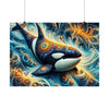 Hang the "Abyssal Elegance Orca" on your wall and let it be a constant reminder of the hidden beauty beneath the sea's surface, the grace of the orca's dance, and the intricate tapestry of life that thrives in the depths of our planet's last frontier.