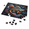 The complexity of the image, with its swirling fractal backdrops and the vibrant mosaic of the pike's body, promises hours of engaging puzzle-solving. The interplay of colors and shapes will draw you deeper into the puzzle, as each piece clicks satisfyingly into place, slowly unveiling the grandeur of this surreal sea creature.