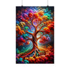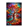 Step into a realm where the ethereal meets the electric with our "Neon Arboretum" poster. This captivating piece of art showcases a surreal tree at the heart of a cosmic forest, with branches weaving through the darkness like streams of liquid light. The tree's foliage bursts in an awe-inspiring spectrum of neon colors, from deep purples to radiant oranges, mimicking the vibrant chaos of a painter's palette or the mysterious beauty of a nebula scattered across the night sky.