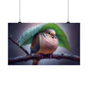 In a tranquil forest, as rain cascaded down from the gray sky, a lone mourning dove found solace on a sturdy branch. Sheltered by a delicate leaf, it sat perched, embracing the chilly weather. Every feather on its body boasted crisp details and hyper-realistic textures, as if it were a masterpiece painted by Mother Nature herself.