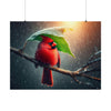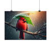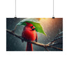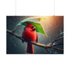 Through the chilly air, Oscar's vibrant red feathers shimmered, blending with the rich hues of the forest. The vibrant colors of his plumage came alive, their tones harmonizing with the rain-washed landscape. It was as if Oscar himself had been painted by a master artist, with the utmost care given to even the smallest brushstroke.
