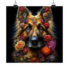 The poster, printed on high-quality matte paper, presents a lavish spectrum of colors that promise to add an aura of elegance and tranquility to any room. The hyper-realistic artistry ensures that every petal and leaf interlaced within the shepherd's coat is as lifelike as nature itself. Perfect for the discerning collector or as a gift to the nature and dog enthusiasts in your life, this piece not only enhances interior aesthetics but also resonates with the themes of growth, companionship, and the harmonious cycle of life.