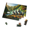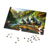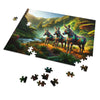 Piece together a world of extraordinary color and enchanting landscapes with "The Vibrant Trio" jigsaw puzzle. This stunning puzzle invites you to step into a serene valley, where the sun bathes the world in a warm glow, illuminating a group of three donkeys whose coats are a fantastical tapestry of swirling, vivid colors. Each donkey is a unique burst of patterns, from deep celestial blues and purples to the fiery reds and oranges of a sunset, down to a kaleidoscope of myriad hues that change like the facets of a gemstone.