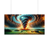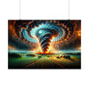 "The Vortex Over Verdant Fields" poster transforms your room into a dynamic showcase of nature's dual character - its serene grace and its ferocious power. This premium quality poster captures the explosive energy of the vortex as it spirals down to the calm, orderly farmland below, reminding us of the delicate balance between order and chaos.
