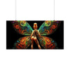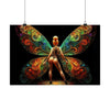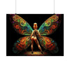 Step into a world of wonder with the 'Tinker's Bell' poster, where fantasy and artistry entwine to create a vision of enchantment. At the heart of this mesmerizing piece is the mythical figure of Tinker's Bell, a fairy of unparalleled beauty and grace. Her expansive wings unfold in a radiant display of intricate, fractal patterns that glow with a vibrant spectrum of colors, reminiscent of the most vivid dreams.
