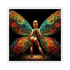 The "Enchanted Elegance" sticker features the stunning silhouette of a fairy, captured in a moment of serene beauty. This exquisite design showcases the fairy's delicate figure and the majestic span of her wings, which are adorned with a dazzling array of fractal patterns that cascade in harmonious swirls of fiery oranges, radiant golds, and deep emeralds.
