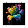Unlock your imagination with this hyper-realistic image of a rainbow tulip that seems to transcend the boundaries of traditional art. The meticulous attention to detail brings the tulip to life, with each petal appearing almost touchable. Against the deep black backdrop, the petals take on a dreamlike quality as they drip and splash, creating a sense of movement and dynamism. This image is a testament to the extraordinary power of art to capture the essence of nature in breathtaking detail.