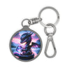 The "Twilight Sentinel" keyring tag presents an image of profound beauty and enchantment. A vigilant dragon, cloaked in scales that gradient from a deep, oceanic blue to a softer periwinkle, perches gracefully at the edge of a reflective body of water. It holds aloft a crystalline orb, radiating with a light that mirrors the captivating twilight sky. The backdrop is painted with strokes of pink and purple hues, casting a serene light that seems to dance across the water's surface. The dragon's wings are unfurled slightly, tinged with the last rays of the sun that set the tips aglow with a subtle magenta. With a watchful gaze, this mythical guardian of dusk brings a sense of calm and wonder, embodying the tranquil transition from day to night. This keyring tag serves as a miniature gateway to a world where magic reigns and the guardians of the night keep a gentle watch over the passing of time.