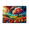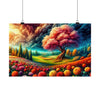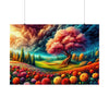 Crafted with exquisite attention to detail, the 'Twilight's Enchanted Canopy' poster is printed on high-quality material, ensuring that each element, from the textured sky to the soft, atmospheric lighting of the landscape, is vivid and lifelike. The panoramic view offers a window into an idyllic pastoral scene that is both calming and invigorating to the spirit.
