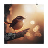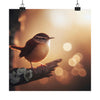A stunning and intricate portrait of a Carolina Wren, framed by the soft and moody morning light. The composition is tight and focused, bringing out the delicate elegance of the bird in sharp relief. Shot in 8K resolution, this photo boasts highly detailed, hyper-realistic vibrancy and vibrant color rendering.