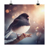 A Window into Nature's Splendor: Bring the beauty and wonder of the natural world into your home with this awe-inspiring photograph of a Dark-eyed Junco amidst a snowy landscape. The morning light casts a soft glow, creating an intimate and ethereal atmosphere that beckons you to step into this magical scene. With its 8K resolution, each tiny detail, from the intricate feathers of the Junco to the delicate texture of the snow-covered branch, is captured with astonishing clarity. This hyper-realistic artwork invites you to explore the vibrant colors and sharp details of nature, offering a glimpse into the breathtaking beauty that surrounds us.