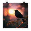 The Brewer's Blackbird, a magnificent bird species known for its sleek plumage and captivating presence, is captured in a moment of serene beauty. Perched gracefully in a towering tree, the bird stands against a backdrop of the enchanting sunset light. The soft bokeh surrounding it adds a touch of dreamlike quality to the image. With a tight composition that emphasizes its remarkable features, the photograph reveals the moody atmosphere of the scene. This stunning portrayal of nature's artistry showcases the Brewer's Blackbird amidst its natural habitat, inviting viewers to appreciate the delicate balance of light, shadow, and wildlife in the great outdoors.