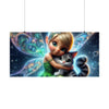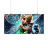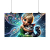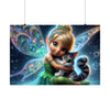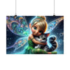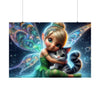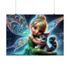 Immerse yourself in the mystical embrace of the "Whispers of the Glade" poster, a captivating piece that weaves the enchanting bond between a serene fairy and her loyal feline companion into the fabric of your everyday environment. This stunning artwork, alive with radiant colors and ethereal beauty, invites a touch of magic and serenity into any room.