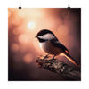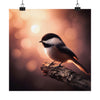 A mesmerizing capture of a Black-capped Chickadee, delicately perched on a tree branch during the tranquil morning light. The composition exudes a moody and contemplative atmosphere, enhanced by the soft and creamy bokeh in the background. This 8K image boasts highly detailed and photo-realistic rendering, showcasing the sharp details of the bird's feathers and vibrant colors in hyper-realistic fashion.