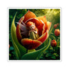 Each sticker is crafted with meticulous attention to detail, allowing the fairy's whimsical grace and the tulip's fiery hues to stand out. The quality of print ensures that every shade and line is as vivid and striking as it is in the full-sized poster, from the fairy's delicate wings to the soft gradation of the flower's petals.