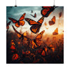 José stood at the edge of the field, marveling at the sight before him. A sea of orange and black wings stretched out before him as the monarch butterflies took off, one by one. Crisp details captured the intricate patterns on their wings, making each one look photo-realistic. The rich color tones, illuminated by the setting sun, cast a warm glow over the scene. Jose felt a sense of awe as he watched the butterflies taking off and soaring through the air.