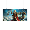 Enter the mystical realm of Nivendell with this epic poster, where the traditional Santa Claus is reimagined as a mighty warrior, armored in ornate regalia fit for an ancient protector. He stands resolute in the serene yet powerful embrace of the snowy wilderness, under a sky dusted with stars and the cosmic dance of the Milky Way. At his side, the majestic Aetherius, a dragon whose scales reflect the frozen beauty of winter, embodies the spirit of ice and preservation.